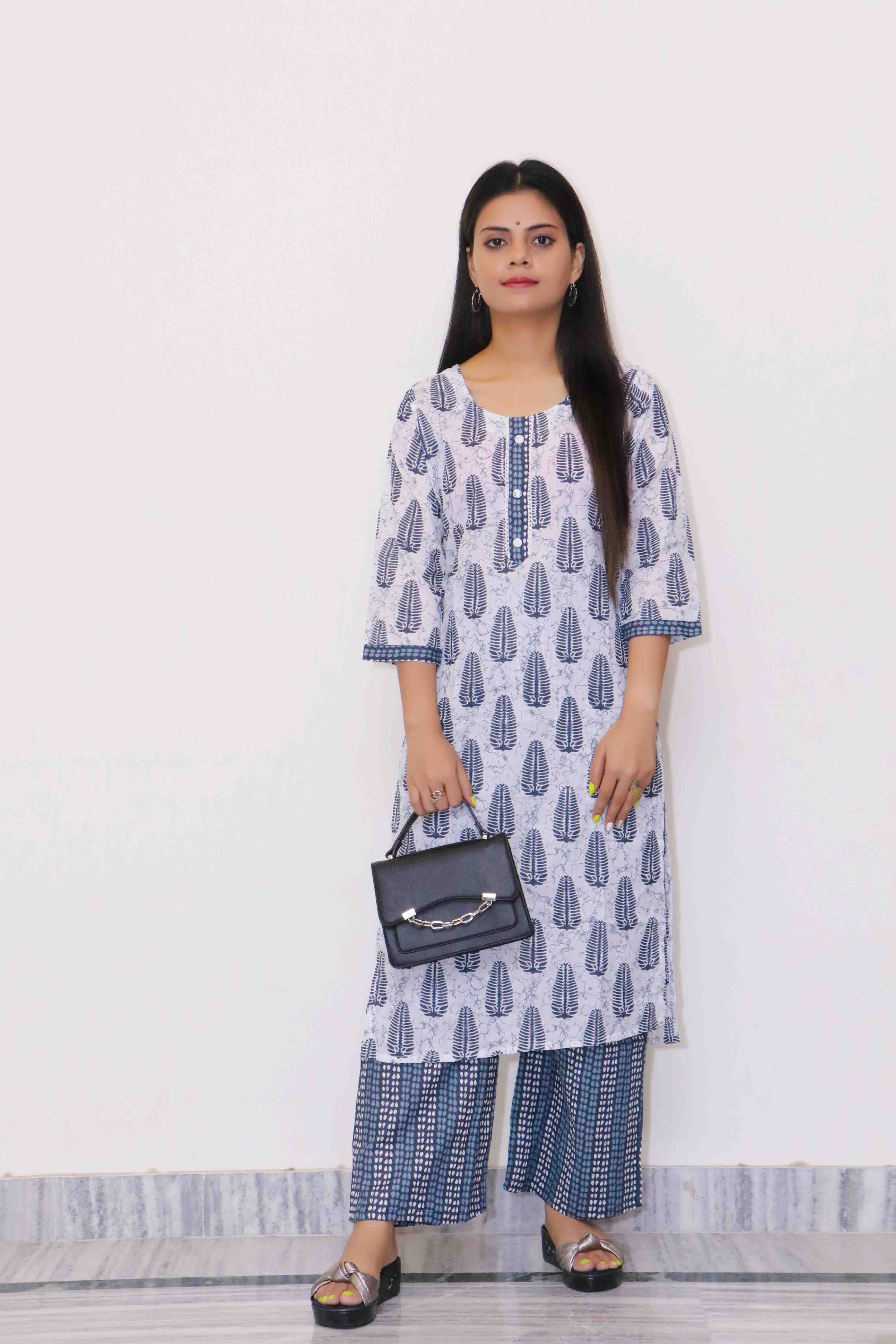 Complementing the kurta, the palazzo pants are made from lightweight, flowy rayon that offers maximum comfort. The coordinated ethnic print ties the look together, and the wide-leg design provides a relaxed yet chic appearance. The elasticized waistband with a drawstring closure ensures a perfect, customizable fit. This set is versatile enough for casual outings, festive events, family gatherings, and office wear.