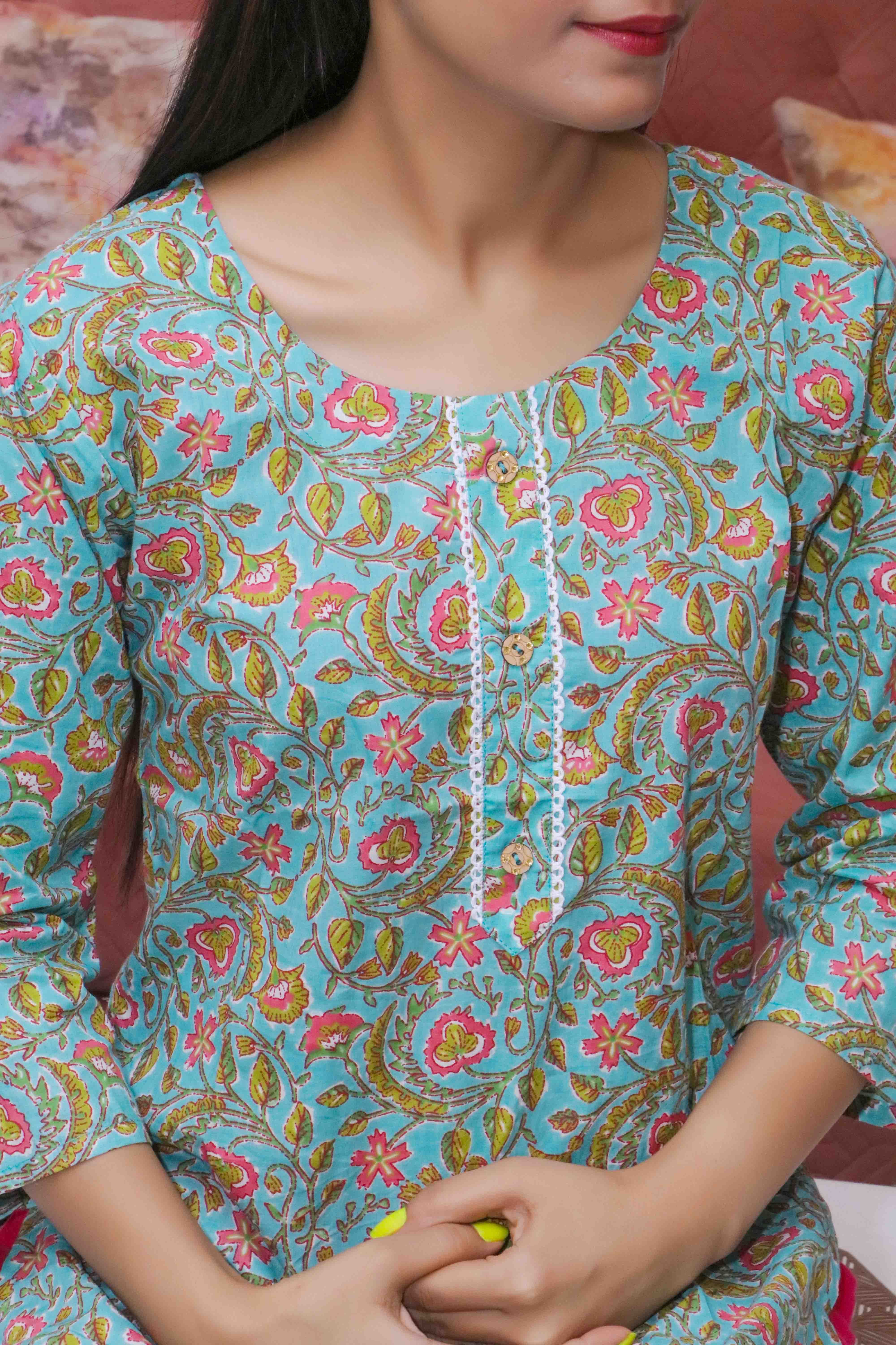 Introducing our enchanting Green & Pink Floral Printed Straight Kurta, a vibrant addition to your ethnic wardrobe. Crafted from premium-quality fabric, this kurta features a captivating floral print in refreshing shades of green and pink, exuding a lively and feminine charm. The straight silhouette and knee-length design offer a flattering fit for all body types, while the classic round neckline adds a touch of elegance to the ensemble. Whether you're attending a casual outing or a festive occasion, this kurta effortlessly combines style and comfort, making it a versatile choice for any event. Pair it with your favorite bottoms and accessories to create a personalized look that reflects your unique style. Embrace the beauty of nature with our Green & Pink Floral Printed Straight Kurta and make a chic statement wherever you go.